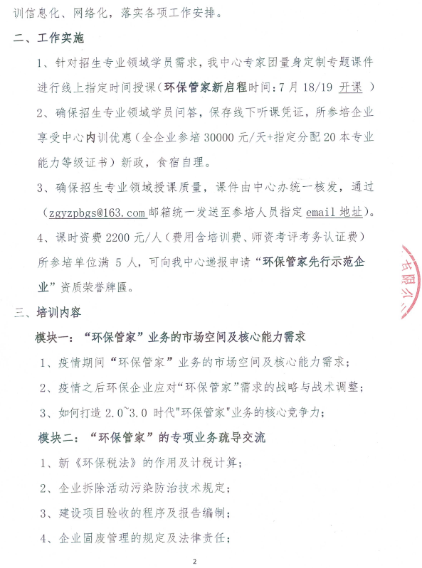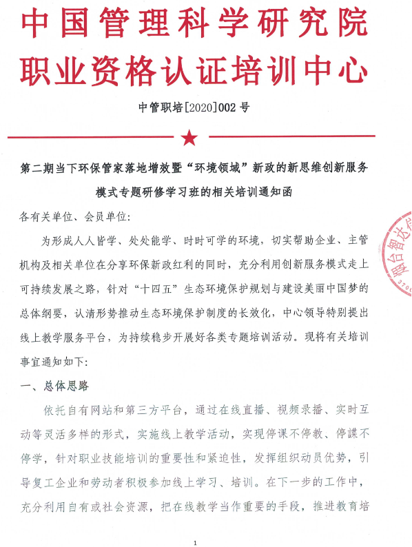 第二期当下环保管家落地增效暨“环境领域”新政的新思维创新服务模式专题研修学习班的相关培训通知函